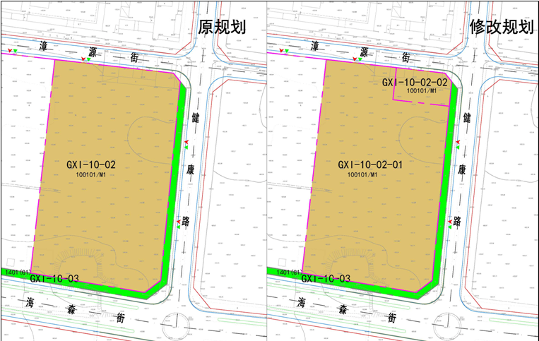 结合现状道路建设情况,按照当前产业发展用地需求将GXI-10-02地块分割为GXI-10-02-01、GXI-10-02-02两个地块,规划指标不做修改。