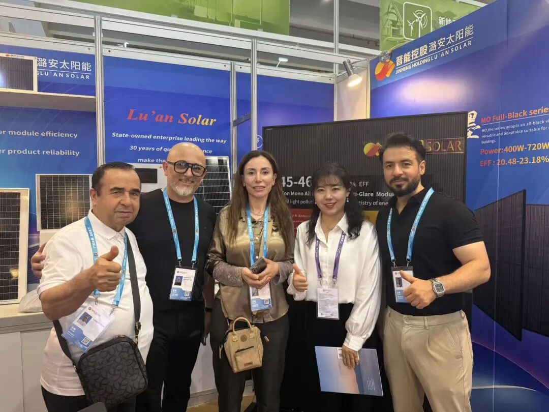 展会期间,潞安太阳能展台人气爆棚,来自欧洲、东南亚、中东及“一带一路”沿线多国的采购商纷纷驻足咨询、深度洽谈。工作人员通过实物展示、技术讲解与案例分享,全面呈现产品优势、研发实力与全球化服务能力。众多客商对“墨”系列组件的低眩光、高稳定特性及成套系统的实用性给予高度认可,现场达成多项合作意向,为公司进一步开拓国际市场、扩大海外业务版图奠定坚实基础。